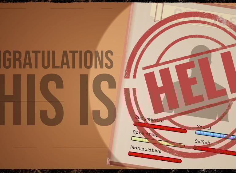 Step into the cubicle of a soul-processing clerk for a corporate empire in the clouds to decide who goes to Heaven or Hell